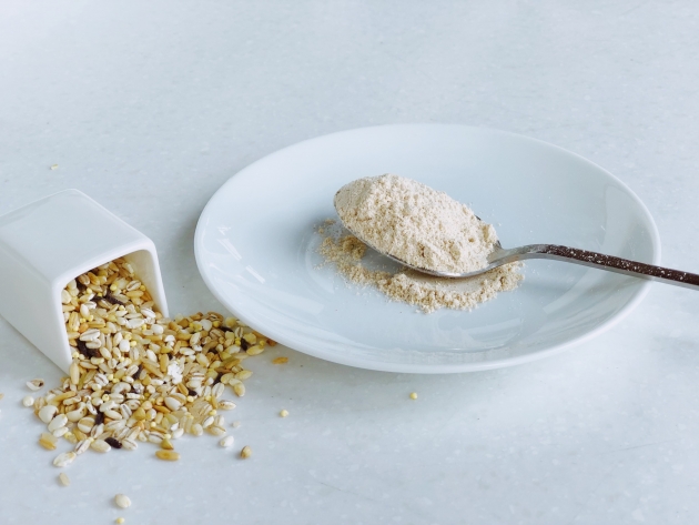 這是可以直接泡牛奶或鮮奶或豆漿的綠豆粉喔!經過炒熟後磨粉!